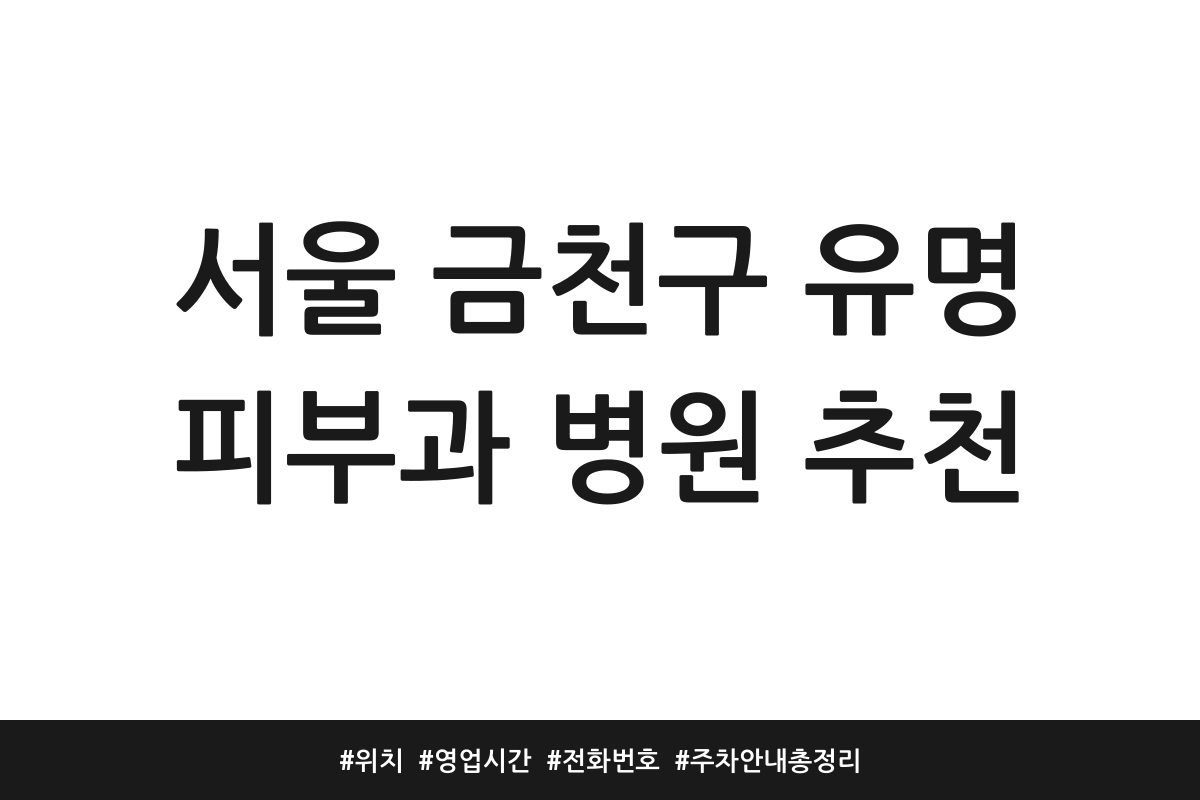서울 금천구 유명 피부과 병원 추천 | 위치 | 영업시간 | 전화번호 | 주차 안내 총정리